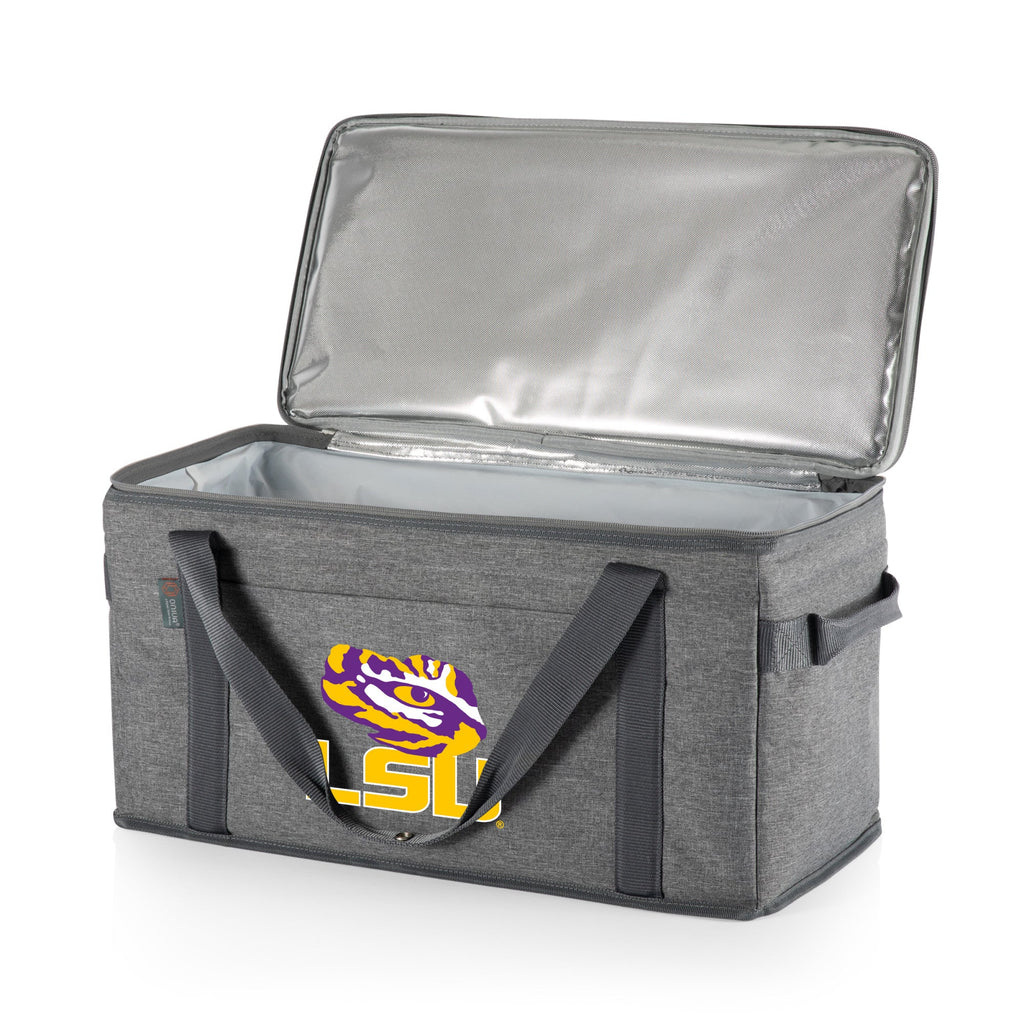 Headed to a big tailgate? Camping with a group? Snack parent for a thirsty crew? Enter the LSU Tigers 64 Can Collapsible Cooler, an insulated soft beverage tote with seriously big capacity! This soft-sided, insulated picnic tote features a water-resistant interior and easily compacts for storage or post-party transport. When you’re through all 64 cans, just secure it to a large pack with the included securable bungee cord or fold it up into another carrier. Go ahead and pack up more than 5 12-packs or pop in some brews and soda with your full picnic - this insulated cooler tote is versatile, durable, and ready for some action! Keep the bubbly bevs flowing on-the-go while you’re having fun with family and friends with the LSU Tigers 64 Can Collapsible Cooler