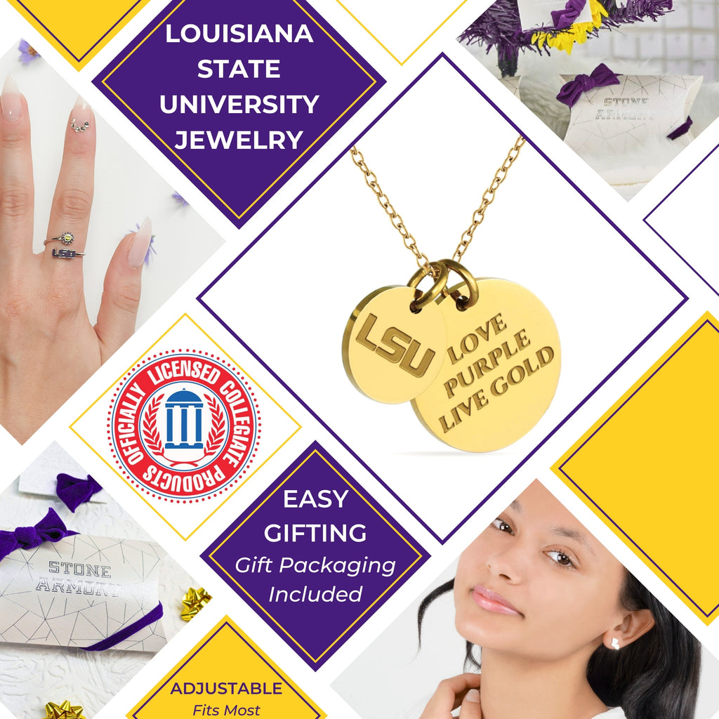 - Express Your LSU Tigers Spirit Every Day: This officially licensed Stone Armory Louisiana State University necklace features 18K gold-plated pendants engraved with the iconic LSU logo and the mantra 'Love Purple Live Gold.' Designed for both casual and game-day wear, this adjustable necklace (16-20 inches) makes the perfect gift for LSU fans, students, and alumni