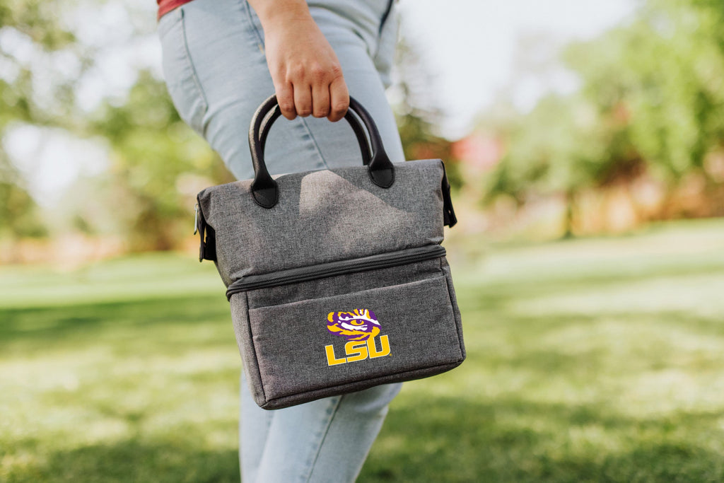 The LSU Tigers Urban Lunch Bag Cooler is a fashion-forward two tiered soft cooler ideal for work, school hallways and, of course, the runway. With an insulated wipe clean work cooler on the bottom, a dry compartment up top and an additional front storage area to boot, there’s plenty of space in this lunch tote to take whatever you fancy, wherever you fancy. Fashion conscious men and women can ensure their hot items stay hot and their cool items stay cool with this high-function and high fashion lunch box. Ensure your personal cooler bag reflects your personal style with the Urban Lunch Bag.