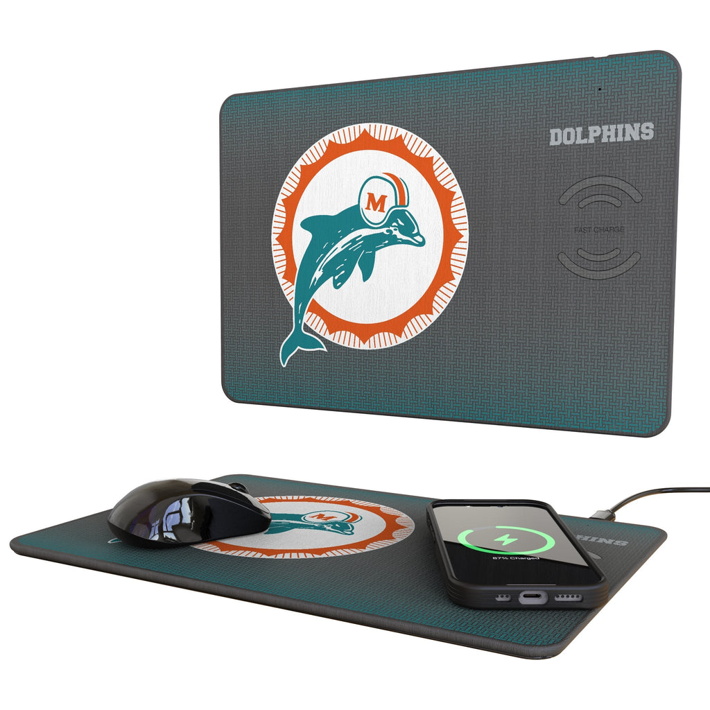 Miami Dolphins 1966-1973 Historic Collection Linen 15-Watt Wireless Charger and Mouse Pad