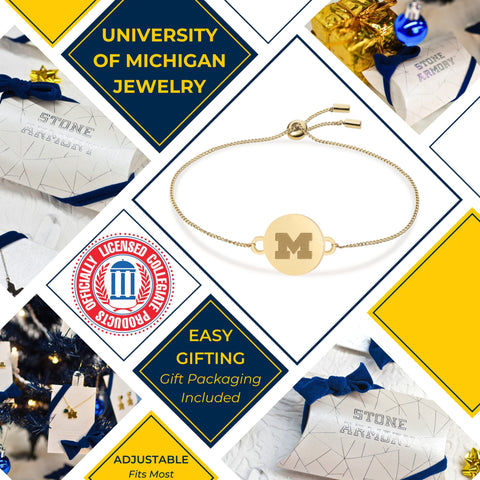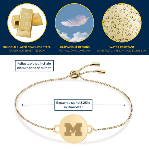 - Sport your Wolverine Spirit in Style with this Exquisitely Crafted Michigan Bracelet : Treasure your Michigan Wolverine Spirit with this Michigan adjustable bolo chain bracelet for women and men; this University of Michigan bracelet features an engraved Block M charm design on an 18K gold plated stainless steel bracelet