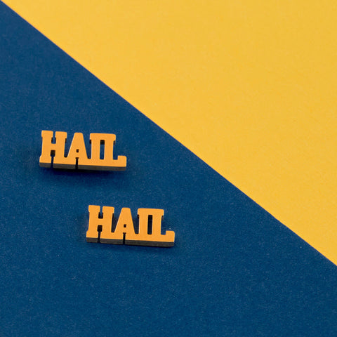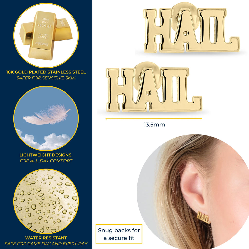 | Stone Armory's Michigan HAIL stud earrings are here! Gear up for the game with our beautifully designed Michigan Wolverines earrings! Wear them to your next tailgate or around town to show off your University of Michigan pride. These stainless steel UM earrings would also make the perfect Michigan gift for your favorite Michigan Wolverines fan! Stone Armory's UM jewelry is made of stainless steel and carefully designed, making these NCAA Michigan stud earrings the perfect gift to celebrate Michigan graduation, birthdays, Mother's Day, first day of school, the first game, or for everyday fan wear. Thank you for supporting our small business! |
