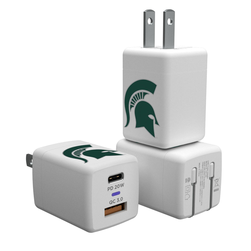 Officially licensed, ETL Listed, 20 Watt USB Charger has a USB A port and a USB C Port for dual charging and a compact design. With foldable prongs, it travels well in a suitcase, backpack or pocket. Designed and printed with your favorite characters or team by Keyscaper in Tualatin, Oregon USA.
