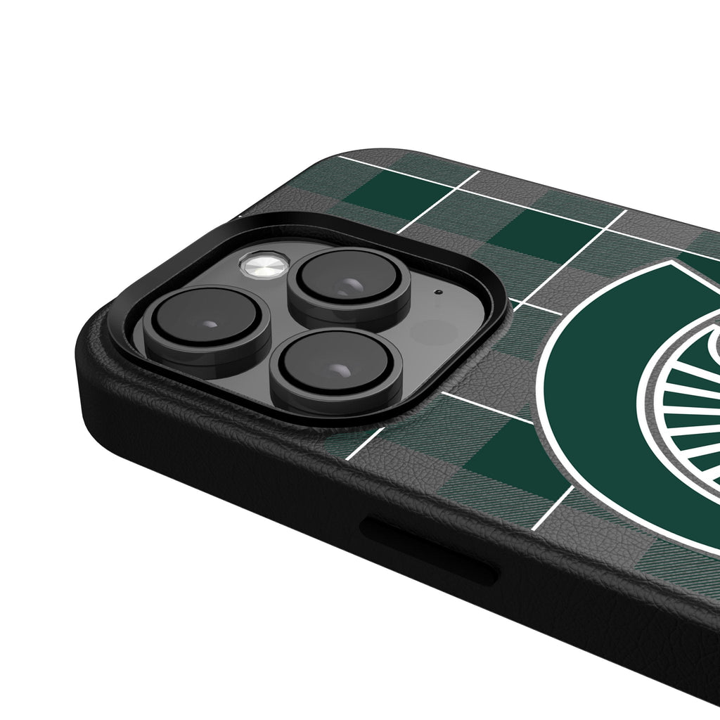 This premium black leatherette case sports an officially-licensed design and is MagSafe compatible. Designed and decorated by Keyscaper in Tualatin, Oregon, USA., this stylish cell phone case is a great way to show off your true fandom. Striking a great balance between bulk and protection, it is durable, has precise speaker and port cutouts, and is compatible with wireless charging devices.