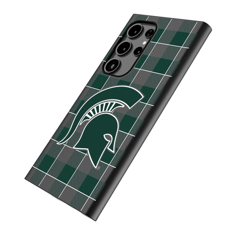 Michigan State University Spartans Plaid MagSafe Compatible Phone Case for Samsung Galaxy
