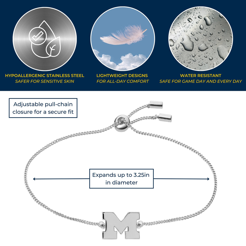 - Sport your Wolverine Spirit in Style with this Exquisitely Crafted Michigan Bracelet : Treasure your Michigan Wolverine Spirit with this Michigan adjustable bolo chain bracelet for women and men; this University of Michigan bracelet features a Block M design on a stainless steel bracelet