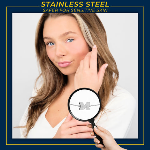 - Gentle on Skin + Human Tested and Approved : The only animals we test on are ourselves - we personally tested the comfort of this Michigan jewelry piece; our Michigan Wolverine pull chain bracelet is made from stainless steel, known for its tendency to be gentle on the skin, making it a wise choice for Michigan Wolverines gifts