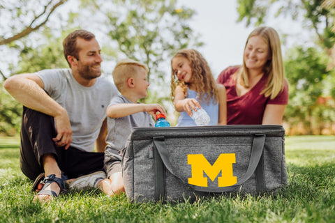 Headed to a big tailgate? Camping with a group? Snack parent for a thirsty crew? Enter the Michigan Wolverines 64 Can Collapsible Cooler, an insulated soft beverage tote with seriously big capacity! This soft-sided, insulated picnic tote features a water-resistant interior and easily compacts for storage or post-party transport. When you’re through all 64 cans, just secure it to a large pack with the included securable bungee cord or fold it up into another carrier. Go ahead and pack up more than 5 12-packs or pop in some brews and soda with your full picnic - this insulated cooler tote is versatile, durable, and ready for some action! Keep the bubbly bevs flowing on-the-go while you’re having fun with family and friends with the Michigan Wolverines 64 Can Collapsible Cooler