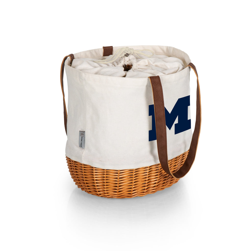 Is it a beach bag? Yes. Is it a picnic basket? Also yes. Is it a tote bag? Y-e-s. Will it be there for you because it's been there before? YES. You may find yourself asking more questions, but let me stop you there, because the answer is, "Yes." Somewhere between a durable picnic tote and a stylish beach bag, the Michigan Wolverines Coronado Canvas and Willow Basket Tote is the perfect companion wherever you're headed. This tote is three+ bags in one, with a willow wicker bottom, canvas body (in lots of chic colors and patterns), and fully-lined interior. This tote bag for women makes a statement (and fits a sizable wine and cheese picnic) while delivering handy canvas tote convenience everywhere from the grocery to the beach.