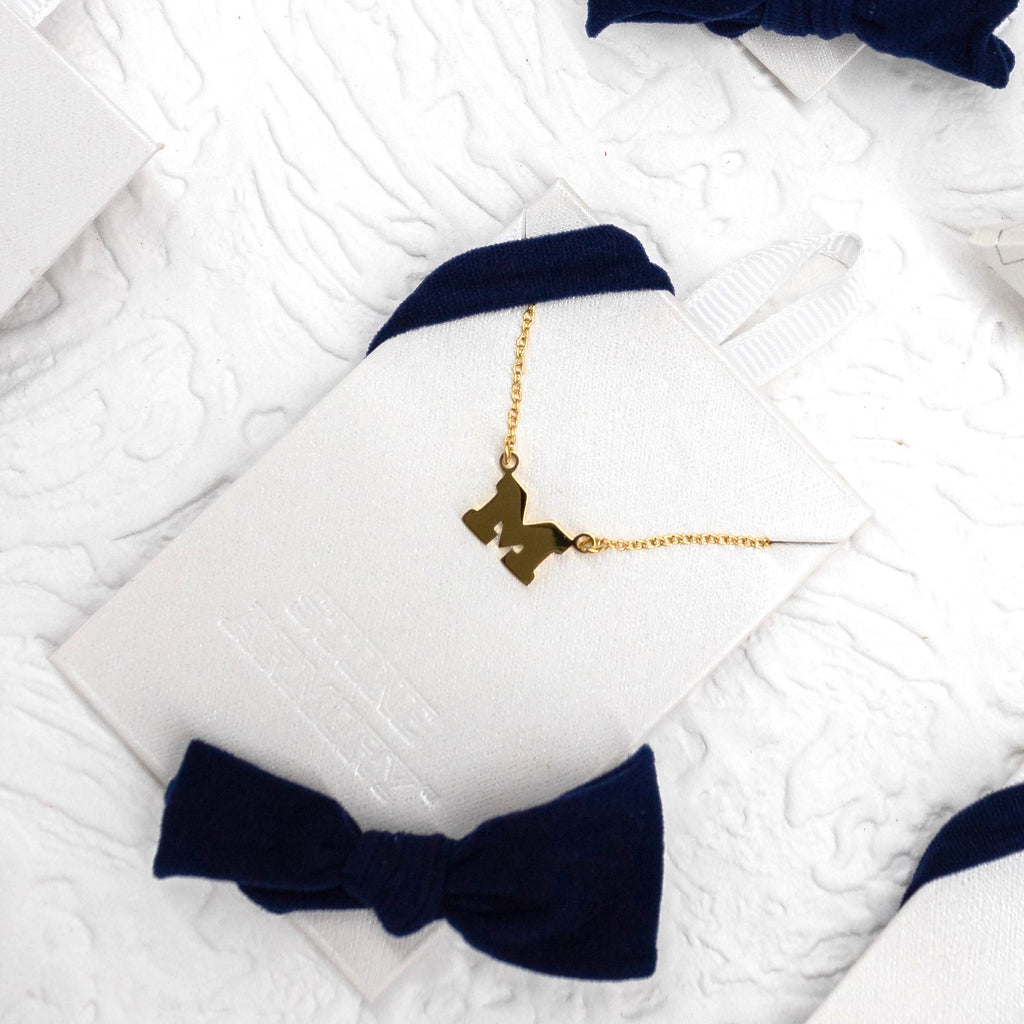 - 💙TREASURE YOUR Michigan Wolverines SPIRIT: This Stone Armory University of Michigan necklace is officially licensed. A classic Michigan Block M necklace with gold-plating and crystals, to show off your UM Wolverine pride.
