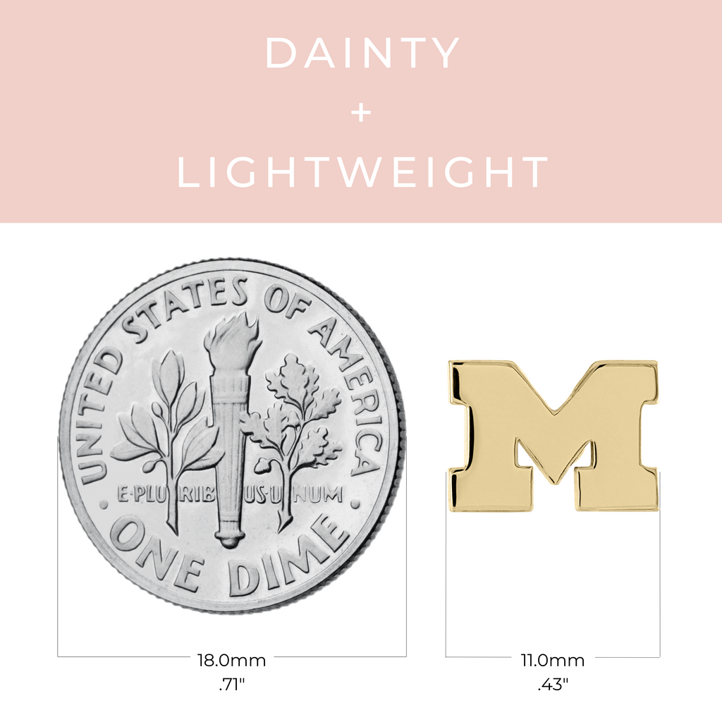 Stone Armory's Michigan Block M necklace is finally here! Gear up for the game with our beautifully designed Michigan Wolverines necklace! Wear it to the next tailgate or around town to show off your University of Michigan pride. This adjustable UM necklace would also make the perfect Michigan gift for your favorite Michigan Wolverines fan! Stone Armory's UM jewelry is made of stainless steel and is adjustable in size, making this NCAA Michigan necklace the perfect gift to celebrate Michigan graduation, birthdays, Mother's Day, first day of school, the first game, or for everyday fan wear. Thank you for supporting our small business!