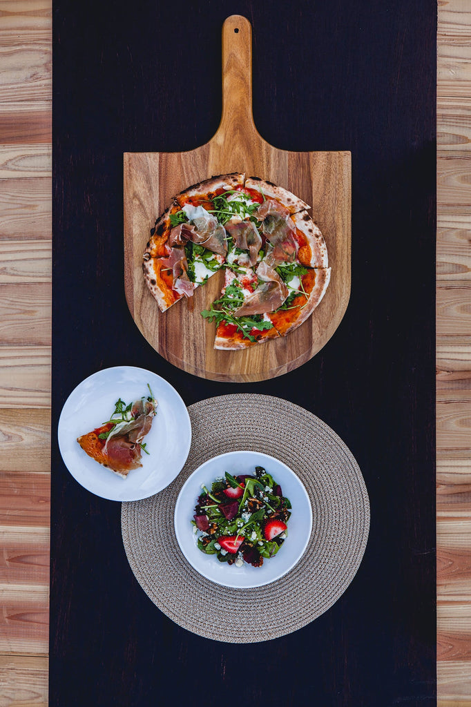 There is perhaps no food more universally beloved than pizza, the great equalizer. If you’re holding a pizza party at home, make sure you have the highest quality tools for the job with a wooden baking peel. The Acacia Wood Pizza Peel is a pro-grade pizza board with a beveled edge to make it easier to transfer pizzas and bread in & out of the oven (or your fancy wood-fired pizza oven!). With a tapered handle for a steady and comfortable grip, and the beautiful natural acacia wood grain, this pizza paddle looks equally lovely on the table or hanging in your kitchen. When the pizza party's done, simply surface wash your wood pizza peel with a damp cloth and hang it by the integrated hole in the pizza board handle.