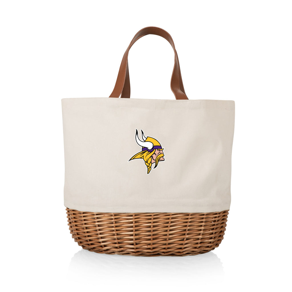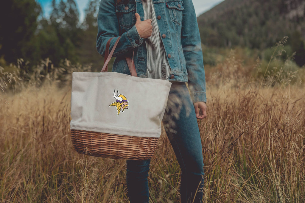 It’s a basket! It’s a tote bag! It’s a...bagsket? Sure! The Minnesota Vikings Promenade Picnic Basket for 2 is a picnic basket set dressed up as a chic tote bag. Both fashionable and functional, the Promenade is fitting for every occasion. Unlike more conventional baskets, the Promenade’s collapsible interior allows for easy storage. Packed with a full cutlery, plate and wine glass picnic set for two, the Promenade still has plenty of space for your wine and cheese. Instead of a handle, you get a charming leatherette strap. Sitting sturdily on its handwoven willow foundation, this unique and useful basket tote picnic kit makes a fantastic gift - or treat for yourself.