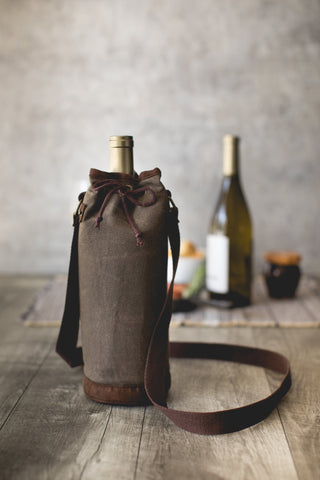 Travel across hill and dale (and even all the way across town!) with the Distressed Waxed Canvas Wine Bag, a fully insulated wine bottle carrier tote with a durable exterior and an adjustable shoulder strap. With stylish faux-suede accents and laces to keep your bottle secure, this canvas wine bottle bag will complement even the finest of vintages. This insulated wine bag is equally at home at a fine dining establishment (no corkage fee? Bonus!), a cocktail party with friends, a wine and cheese picnic in the park, or camping off the beaten path. If you’re searching for an especially thoughtful housewarming or birthday gift for a vino-lover, present this wine tote with a favorite bottle already inside!