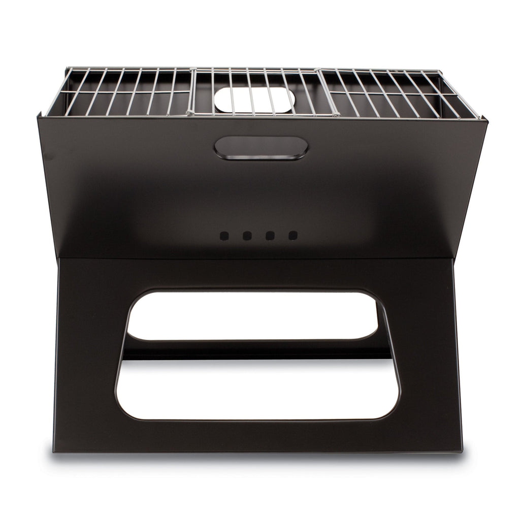 Bring the BBQ wherever you roam with the X-Grill Portable Grill, a sleek, electro-plated steel tailgate Charcoal BBQ grill that packs down flatter than a pancake. This highly portable folding tailgate/camping grill sets up in seconds with its chrome tri-fold cooking grate and durable polyester canvas carrying tote with shoulder strap. Cook up some fun when camping, at a picnic, tailgating and more. All you need is charcoal/kindling and you’re ready to get your BBQ on anywhere. Important: you must provide your own family/friends, they are not included. Although, there’s no rule against solo-bbq - more brisket for you!