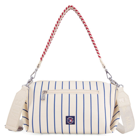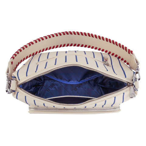 - Adjustable/detachable MLB logo print canvas crossbody strap