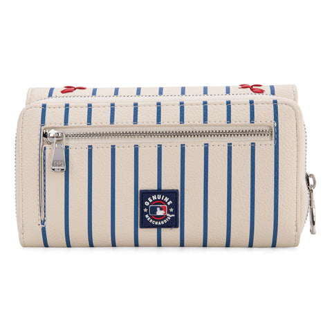 Made of PU Leather, this tri-fold wallet/wristlet has: