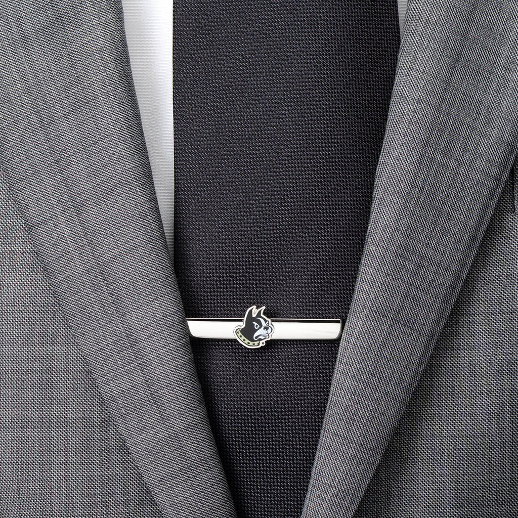 Showcase your school spirit at any sporting event with our Wofford College Terrier Mascot Tie Clip. Sporting the university's adorable black and white terrier on a polished silver tone setting, this Wofford Terrier Mascot tie clip is a great way to rep your favorite university in style. Officially licensed by the NCAA.