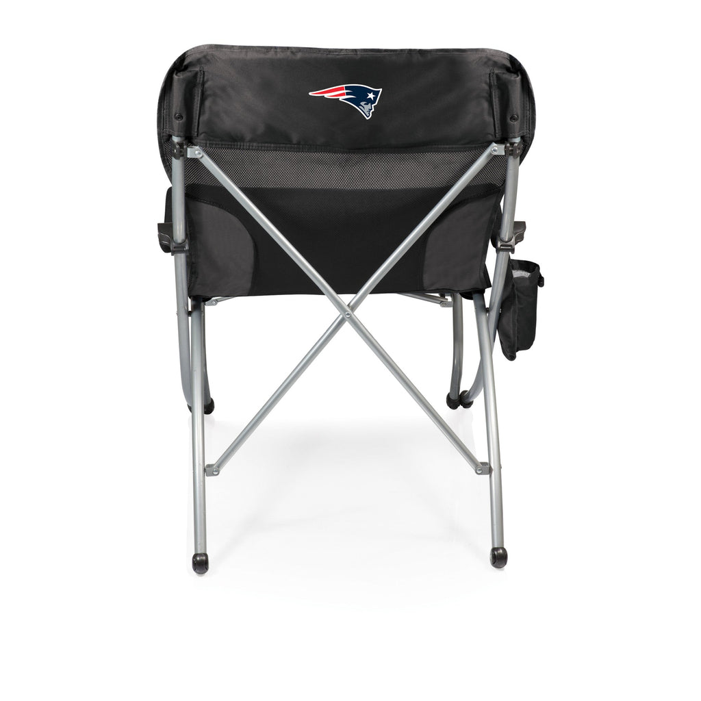 Even if you're not a linebacker, you'll enjoy the extra room of the New England Patriots PT-XL Heavy Duty Camping Chair, an outdoor chair with an extra-wide polyester canvas-constructed seat in a durable ripstop weave. Show off your team spirit everywhere you go with this chair, adorned with your favorite team's logo across the back. This XL camp chair also features a breathable backing, padded armrests, a hanging beverage pocket, and a sturdy, powder-coated steel frame that folds inward to fit in a drawstring carrying bag with shoulder strap. This big and tall folding beach chair is the perfect place to post up for a day at the beach, camping, picnicking, or on your porch! With a high weight capacity of 400lbs, this outdoor folding chair is the heavy duty choice for secure comfort on the go. Made especially for big men and women, this plus size beach chair is comfortable, portable, and affordable - a real XXL dream!