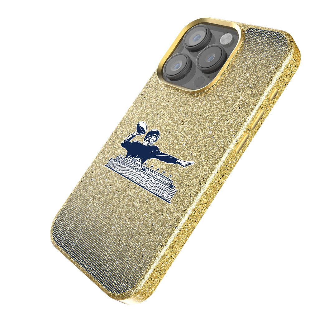 This gold, sparkly case with a microfiber interior is officially-licensed and MagSafe compatible. It provides fun and protection to your cell phone. Designed and decorated by Keyscaper in Tualatin, Oregon, USA., this case is exciting and durable. It has precise speaker and port cutouts, easy press buttons, and a raised lip around the screen and camera lens to provide extra protection against accidental bumps and scratches.