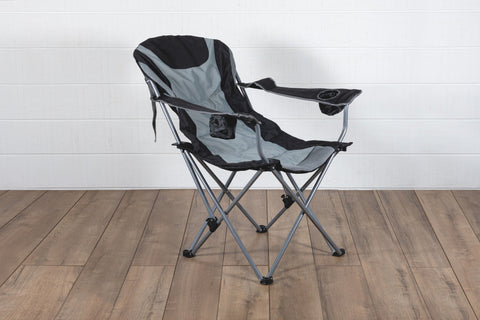Plush, portable, and packable, the Picnic Time New York Giants Reclining Camp Chair is your camping cockpit with three reclining positions, an extra-wide, padded polyester seat and armrests, an insulated drink holder, a zippered pocket, and a sturdy steel frame that folds inward to fit in a drawstring carrying bag with carrying strap. Show off your team spirit everywhere you go with this chair, adorned with your favorite team's logo across the back. This folding outdoor portable chair is the perfect place to post up for camping, picnicking, tailgating, or at the beach. If it’s outdoors, this is portable chair that will get you there. “There” being...comfy? Sure.