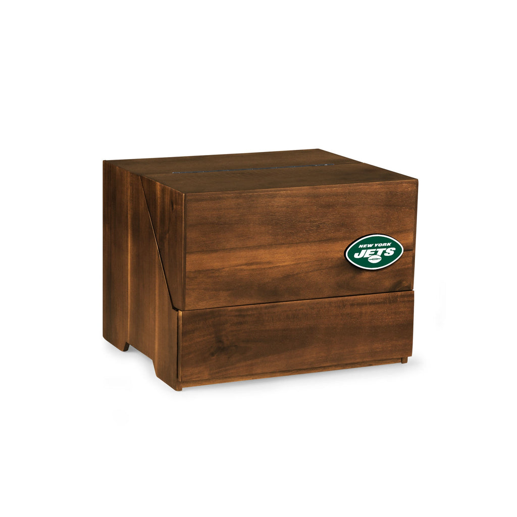 The New York Jets Madison Acacia Tabletop Bar Set sits off to the side, dark and handsome. The sleek, mid-century-inspired lines and cherry-stained acacia wood have already received more than a few batted eyelashes and breathy whispers. At happy hour, your friends swoon and gasp as you open the doors, pull out the tray, and get to mixing with the 19 stainless steel bar tools: six cocktail sticks, one cocktail stick caddy, one hawthorne strainer, tongs, one bar spoon, one double-sided jigger, one muddler with plastic head, one corkscrew, one two-piece shaker, one paring knife, one bottle opener, one glass ice bucket with stainless steel handle, one mixing glass with pour spout, and one marble cutting board. Just like that, this iconic, all-in-one bartender kit has become the conversation hub. Now they're batting their eyelashes at you.