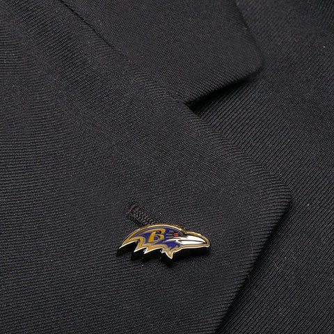 Show your team pride with the officially licensed Baltimore Ravens Lapel Pin on your lapel. Featuring the Baltimore Ravens  team logo in enamel on silver tone plated metal, sport this NFL pin to support your football team any day of the week without compromising your style. Features a clutch-back closure to easily fasten onto your lapel. Officially licensed by the NFL.