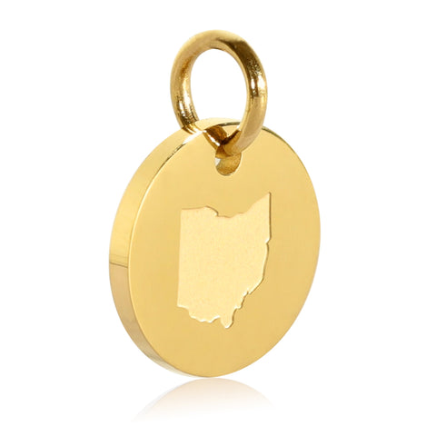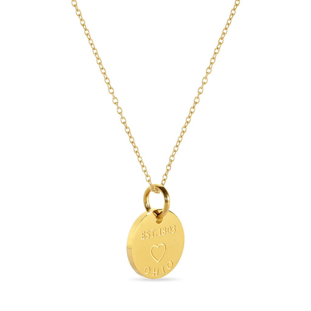 Ohio Map Engraved Charm Necklace - 18K Gold Plate