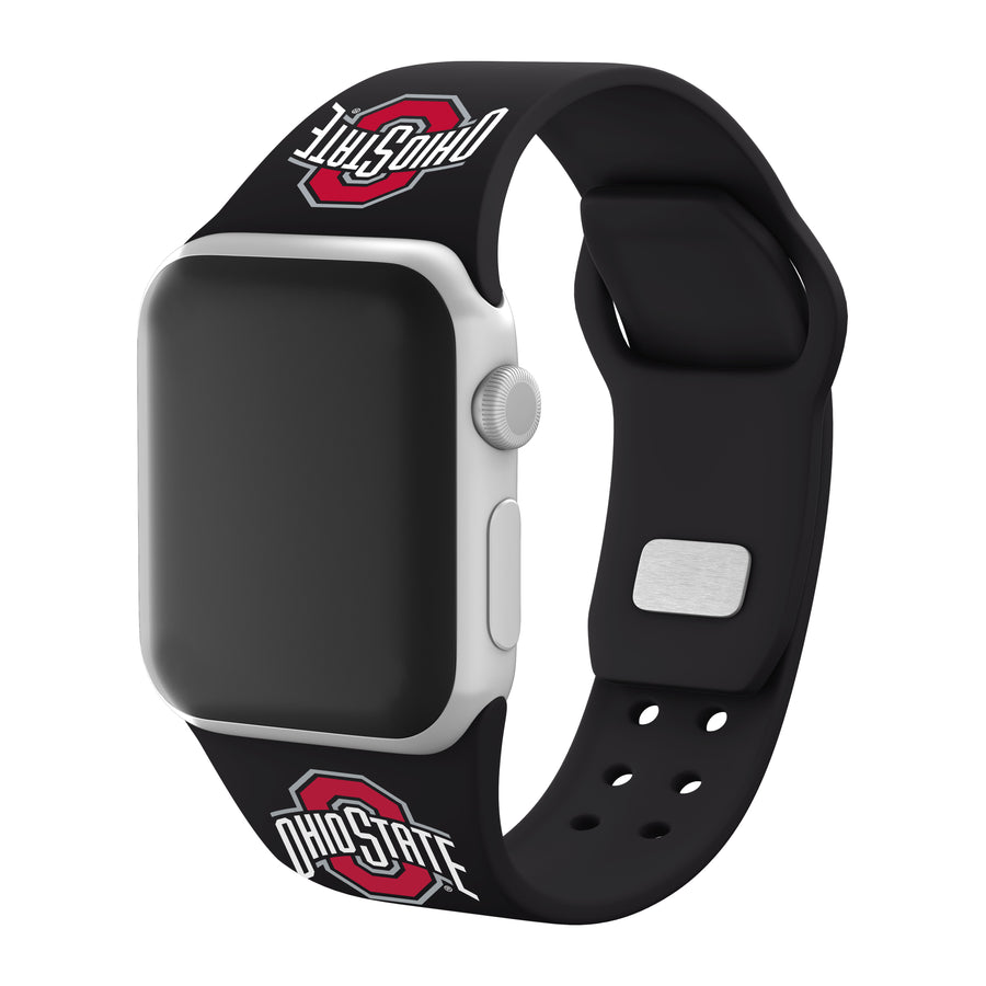This watch band is made using durable silicone and stainless steel. The soft flexible silicone provides a smooth comfortable feel and the dual pin and tuck closure provides added security for the active lifestyle. The Ohio State Buckeyes team logo provides a nice contrast with the band while showing your football spirit in a totally awesome way.