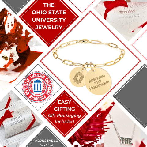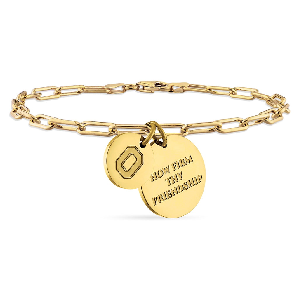 - Sport your Buckeye Spirit in Style with this Exquisitely Crafted Ohio State Bracelet : Treasure your Ohio State Buckeyes Spirit with our Ohio State Gold Charm Bracelet for women and men; this Ohio State University bracelet features engraved Block O and How Firm Thy Friendship charms on a gold paperclip chain bracelet