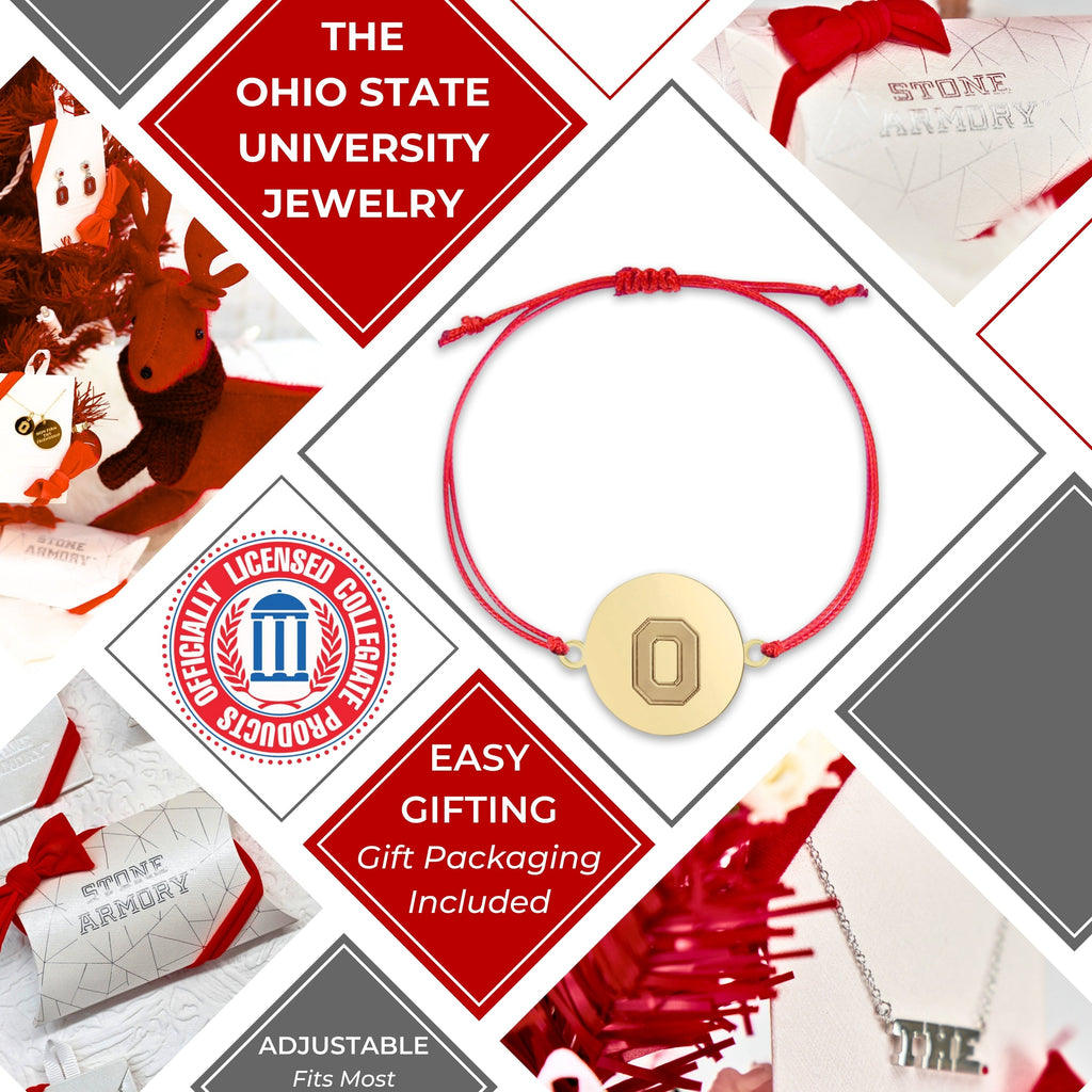 - Sport your Buckeye Spirit in Style with this Exquisitely Crafted Ohio State Bracelet : Treasure your Ohio State Buckeye Spirit with this Ohio State adjustable cord bracelet for women and men; this Ohio State University bracelet features an engraved block O charm on a scarlet cord bracelet