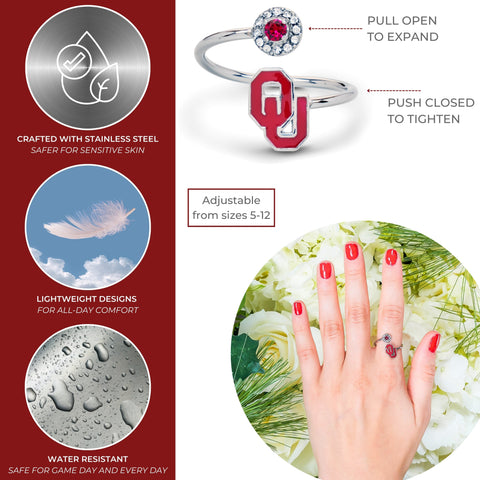 - ❤️THE PERFECT University of Oklahoma GIFT: This OU Sooners ring is adjustable in size and will fit most, making it the perfect womens gift for yourself, Oklahoma fans, graduates, students, moms, sisters, daughters and Oklahoma alumni. Great gift for Mother's Day, Christmas, birthdays and graduation. Boomer Sooner!