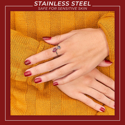 Stone Armory's Oklahoma ring is finally here! Gear up for the game with our beautifully designed Oklahoma Sooners ring! Wear it to the next tailgate or around town to show off your University of Oklahoma pride. This adjustable OU ring would also make the perfect Oklahoma gift for your favorite Oklahoma Sooners fan! The Oklahoma logo is accented by sparkling crimson and clear crystals. Stone Armory's OU jewelry is made of stainless steel and is adjustable in size, making this NCAA Oklahoma ring the perfect gift to celebrate Oklahoma graduation, birthdays, Mother's Day, first day of school, the first game, or for everyday fan wear. Thank you for supporting our small business!