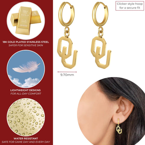 - The Ultimate Fit: These stainless steel Oklahoma huggie hoop earrings provide all-day comfort and timeless style. Showcase your pride for the Oklahoma Sooners with these elegant earrings, perfect for representing your school and team. Their delicate design makes them ideal for any occasion
