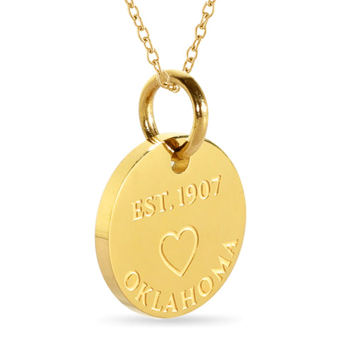 Oklahoma Map Engraved Charm Necklace - 18K Gold Plate