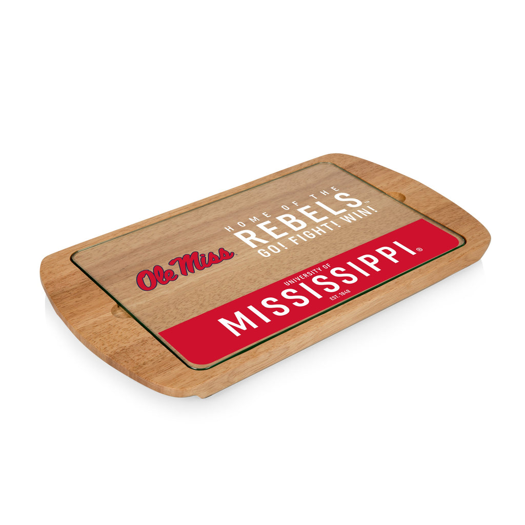 Bright and refined, the Ole Miss Rebels Billboard Glass Top Serving Tray is a parawood cutting board with a removable and customizable glass plate top.
