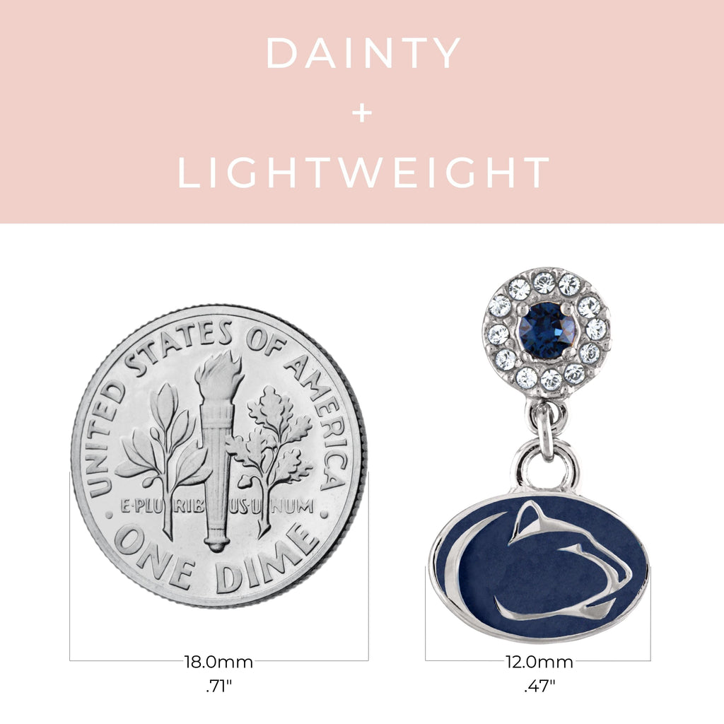 - 💙YOUR PERFECT FIT: These stainless steel Penn State drop earrings are always the perfect fit. Add these sparkling, classic drop earrings to show off your beloved Penn State Nittany Lions school and team. These Penn State earrings measure 18.4mm long by 11.3mm wide.