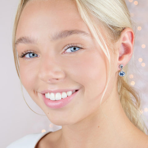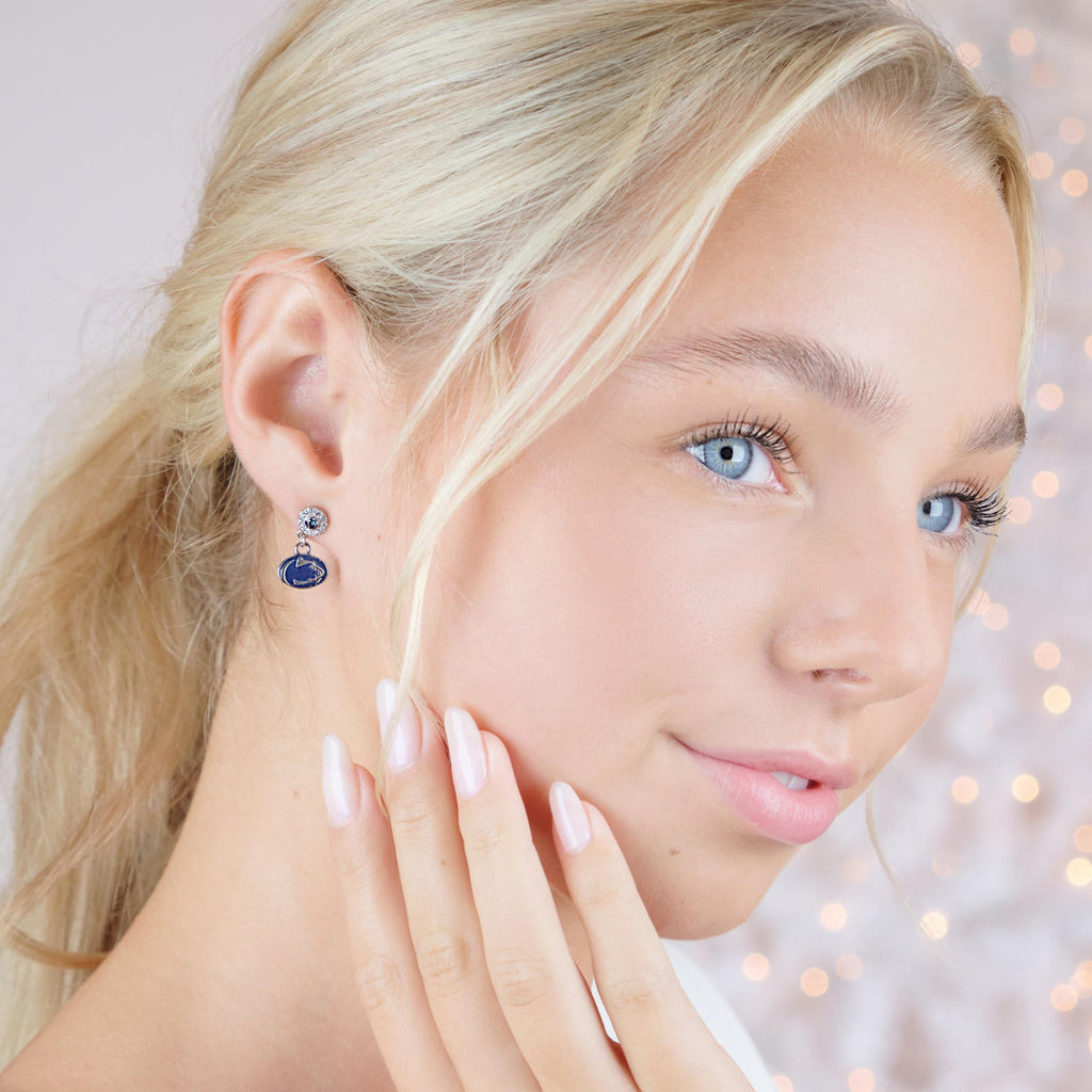 - 💙TREASURE YOUR Penn State Nittany Lions SPIRIT: These Stone Armory Penn State University drop earrings are officially licensed. This classic pair of Penn State Lion earrings with navy and clear crystals is a great way to show off your Penn State Lion pride!