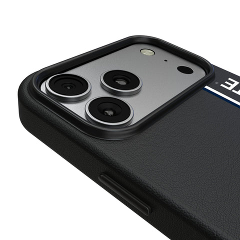 This premium black leatherette case sports an officially-licensed design and is MagSafe compatible. Designed and decorated by Keyscaper in Tualatin, Oregon, USA., this stylish cell phone case is a great way to show off your true fandom. Striking a great balance between bulk and protection, it is durable, has precise speaker and port cutouts, and is compatible with wireless charging devices.