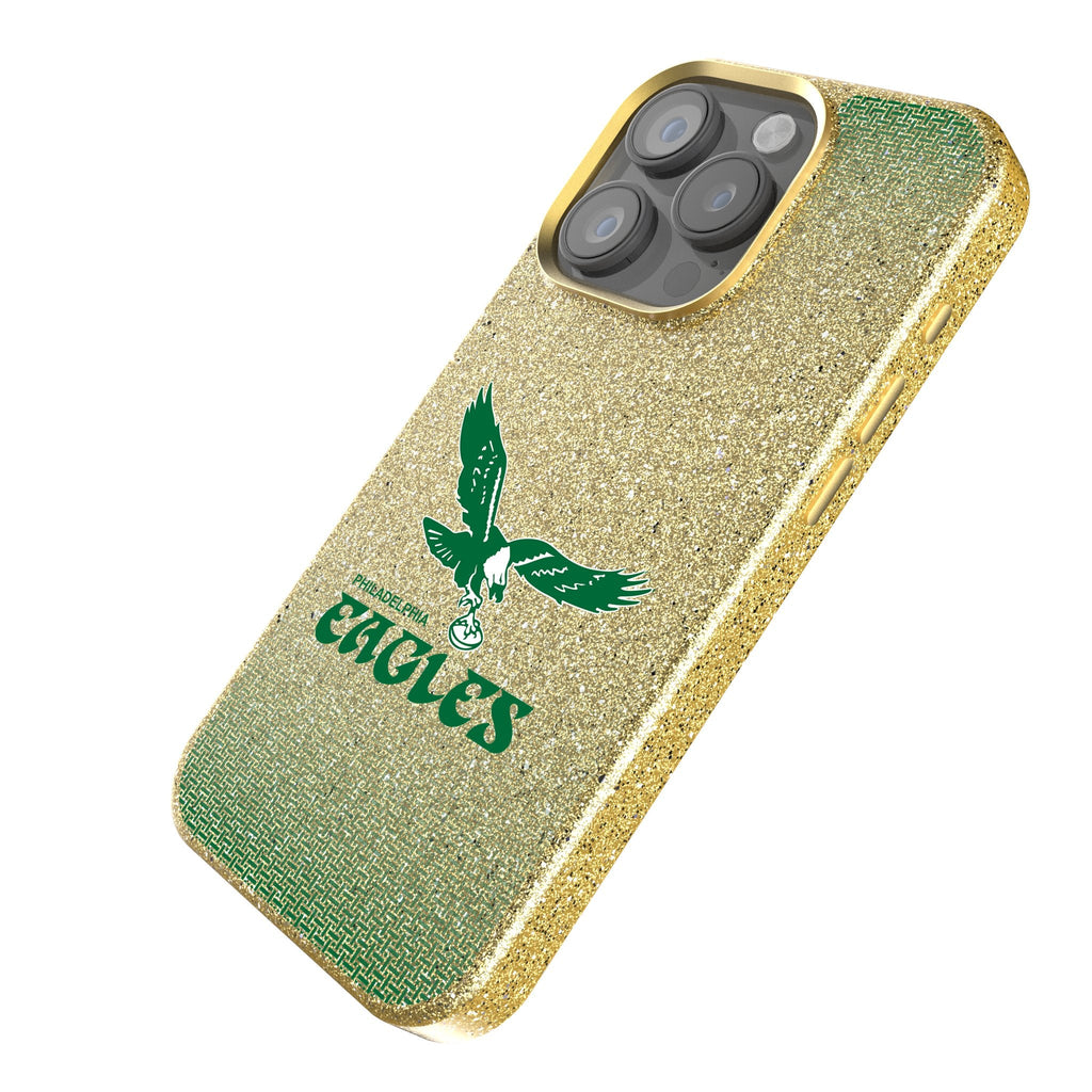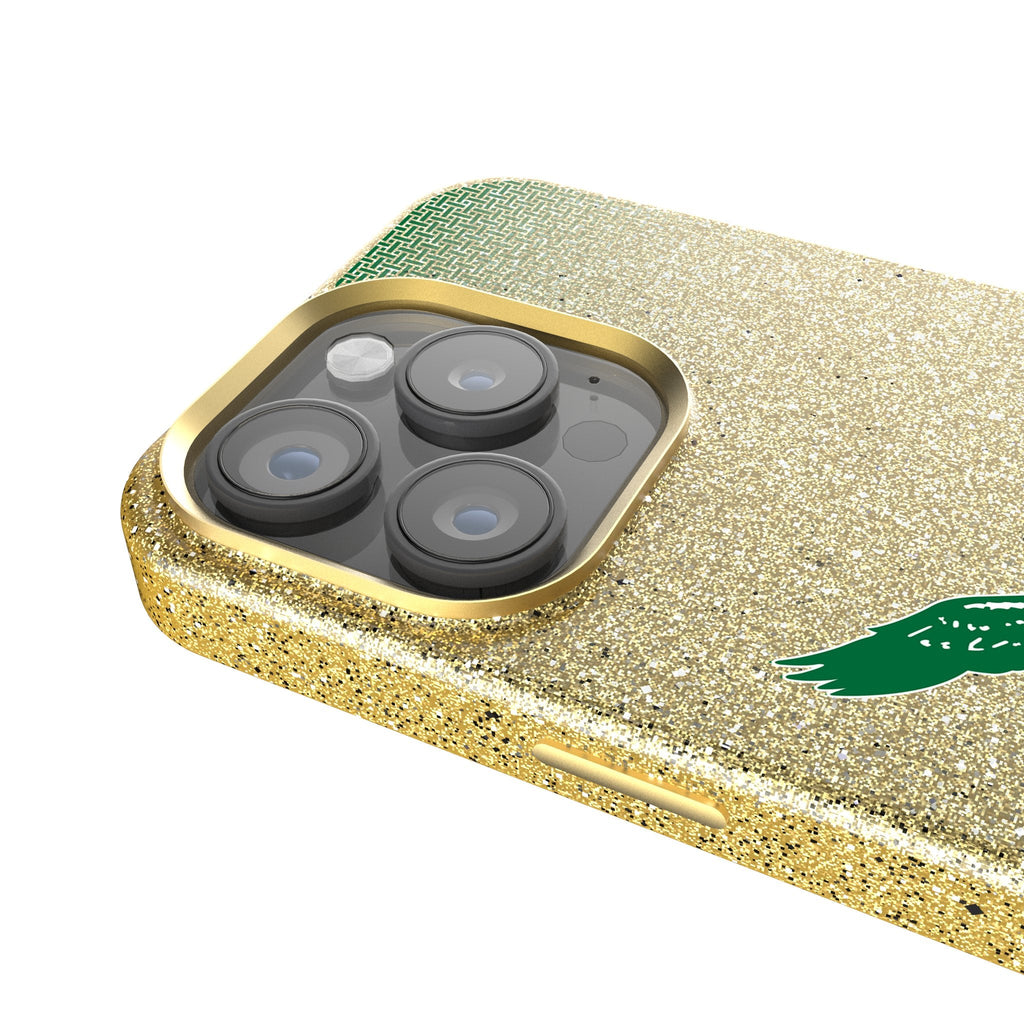This gold, sparkly case with a microfiber interior is officially-licensed and MagSafe compatible. It provides fun and protection to your cell phone. Designed and decorated by Keyscaper in Tualatin, Oregon, USA., this case is exciting and durable. It has precise speaker and port cutouts, easy press buttons, and a raised lip around the screen and camera lens to provide extra protection against accidental bumps and scratches.
