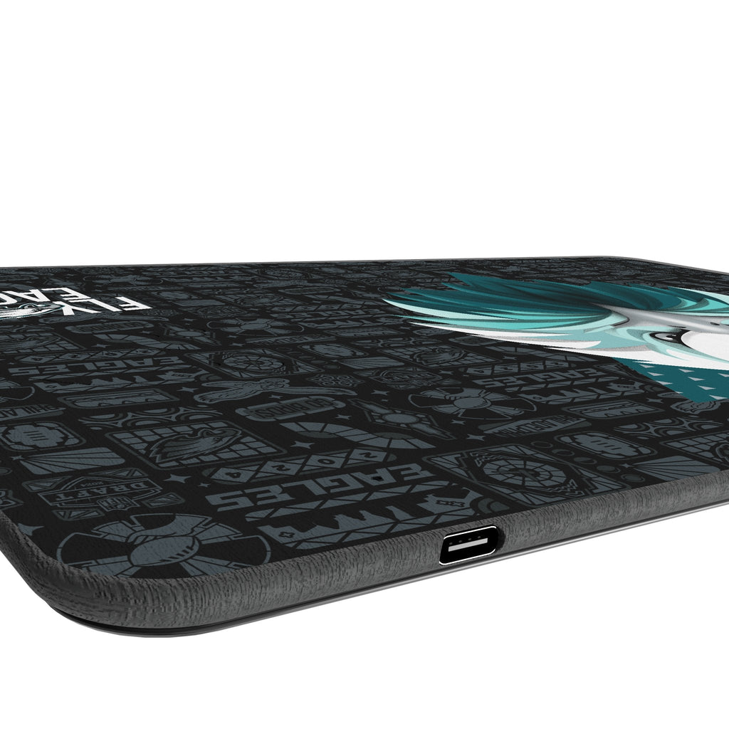 With the Mousepad and Wireless Charger, you will have the combined functions of accurate mouse movement and wireless inductive cell phone charging. The mousepad is thin and lightweight with a non-slip base for mouse accuracy and the charging station provides a 15-watt charging capability. Fantastic for home and office use, the officially licensed Mousepad and Wireless Charger is the perfect office accessory. Designed and decorated by Keyscaper in Tualatin, Oregon, USA.