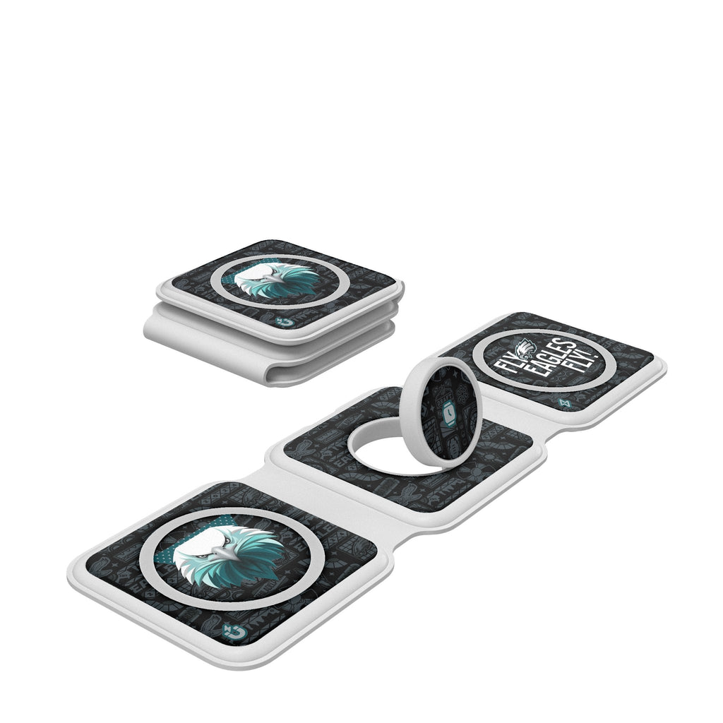 Eliminate cable clutter on your desk, night stand and travel with ease. The 3 in 1 folding charging station is small enough to fit in your pocket yet has room for all your mobile items with only one cord to plug in. Use this charging station to simultaneously charge your iPhone, airPods and Apple watch when pluggged in to a minimum 20 Watt wall charger.