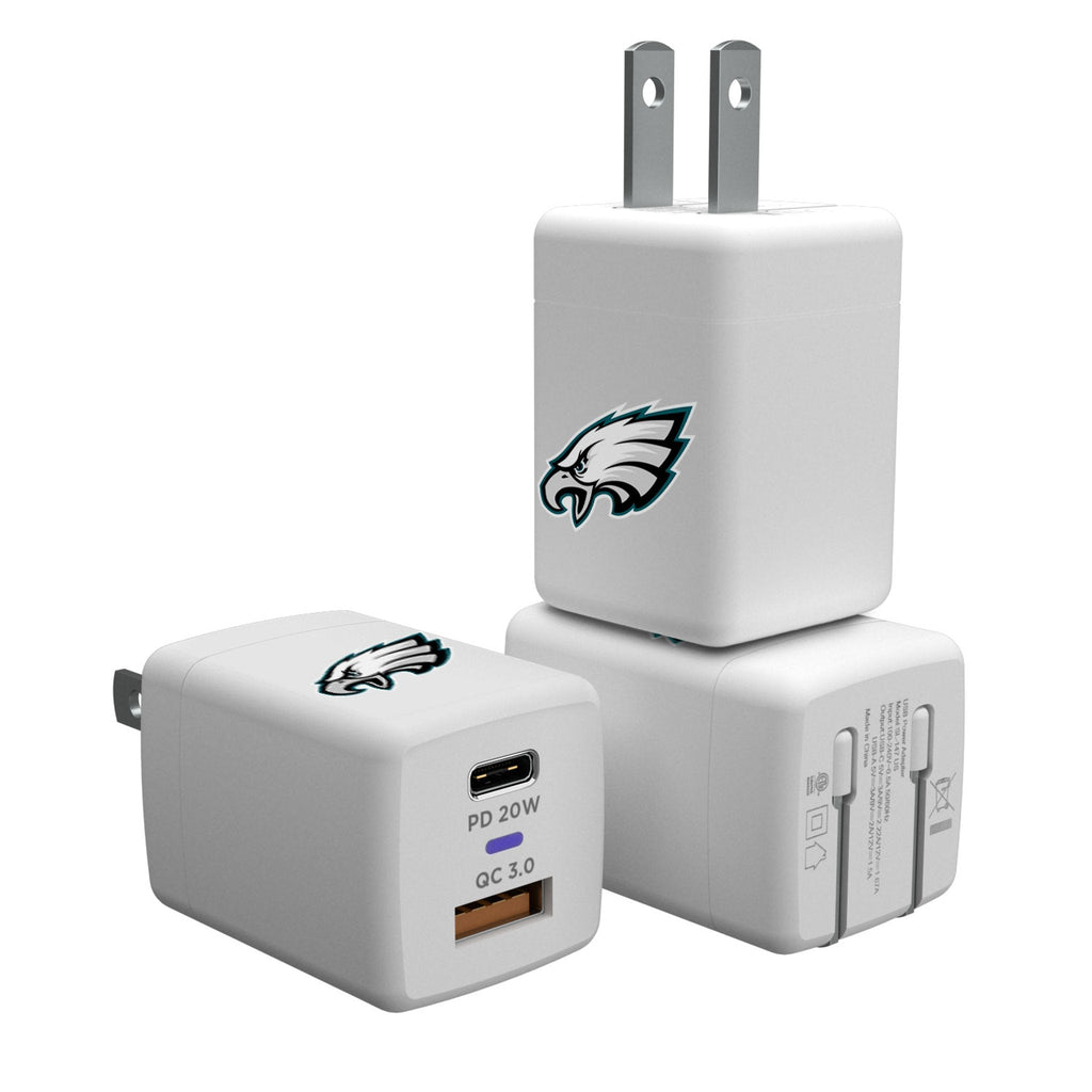 Officially licensed, ETL Listed, 20 Watt USB Charger has a USB A port and a USB C Port for dual charging and a compact design. With foldable prongs, it travels well in a suitcase, backpack or pocket. Designed and printed with your favorite characters or team by Keyscaper in Tualatin, Oregon USA.