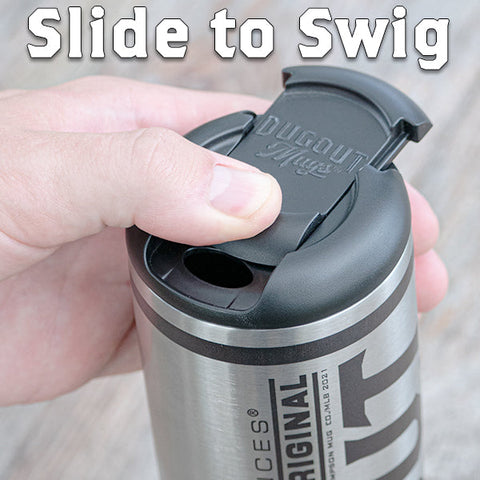 - Spill proof twist lid - travel anywhere, and Swig For The Fences® with the Metal Dugout Mug