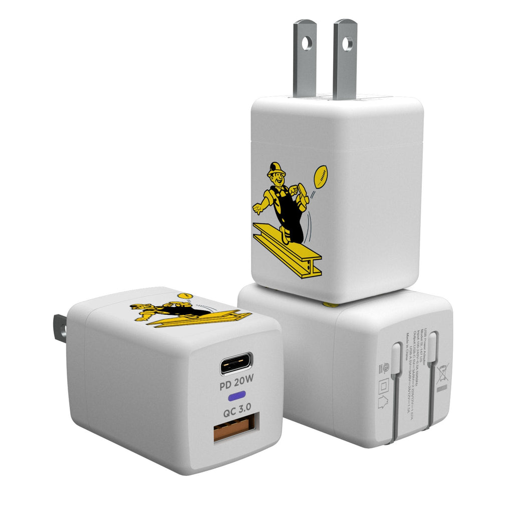 Officially licensed, ETL Listed, 20 Watt USB Charger has a USB A port and a USB C Port for dual charging and a compact design. With foldable prongs, it travels well in a suitcase, backpack or pocket. Designed and printed with your favorite characters or team by Keyscaper in Tualatin, Oregon USA.
