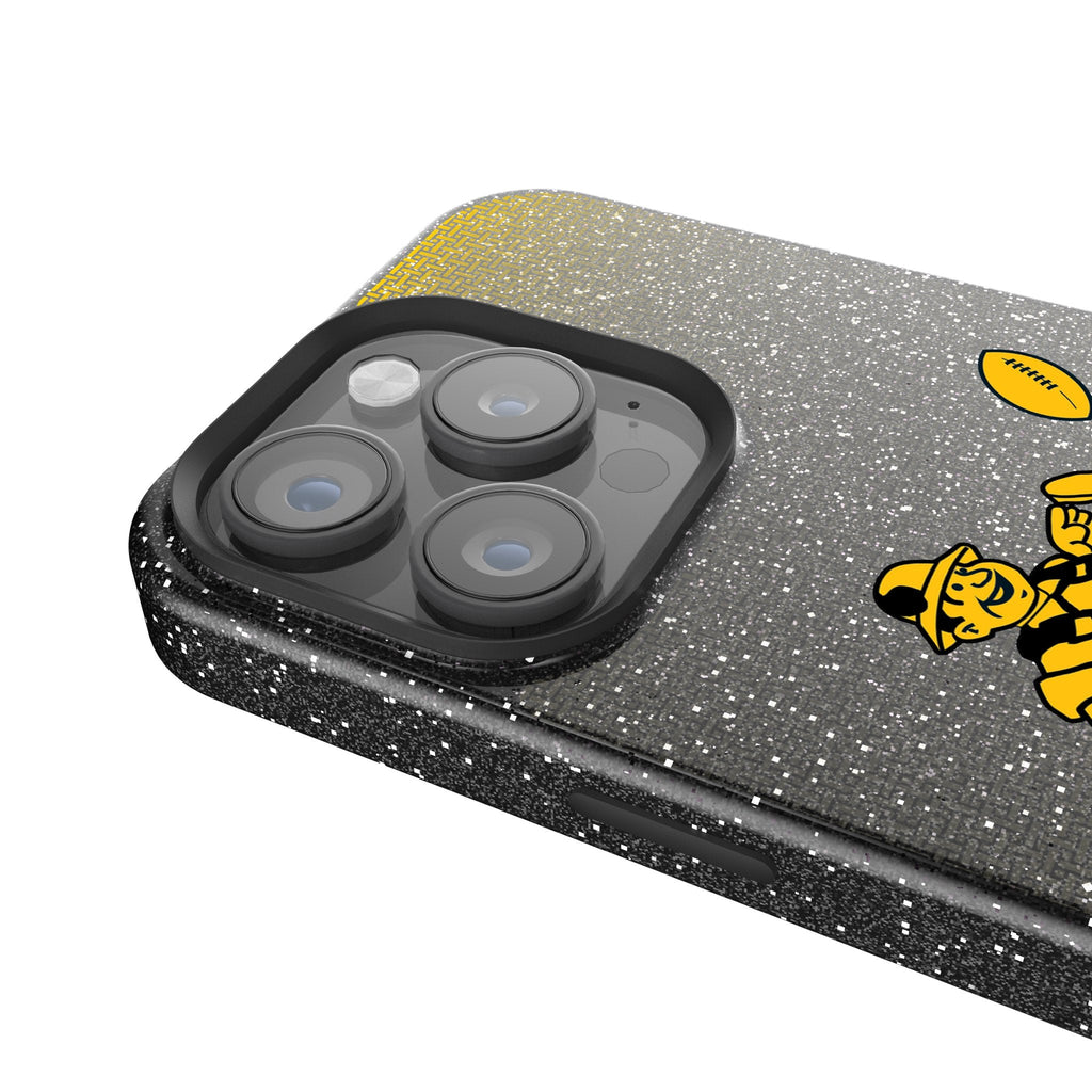 This black, sparkly case with a microfiber interior is officially-licensed and MagSafe compatible. It provides fun and protection to your cell phone. Designed and decorated by Keyscaper in Tualatin, Oregon, USA., this case is exciting and durable. It has precise speaker and port cutouts, easy press buttons, and a raised lip around the screen and camera lens to provide extra protection against accidental bumps and scratches.
