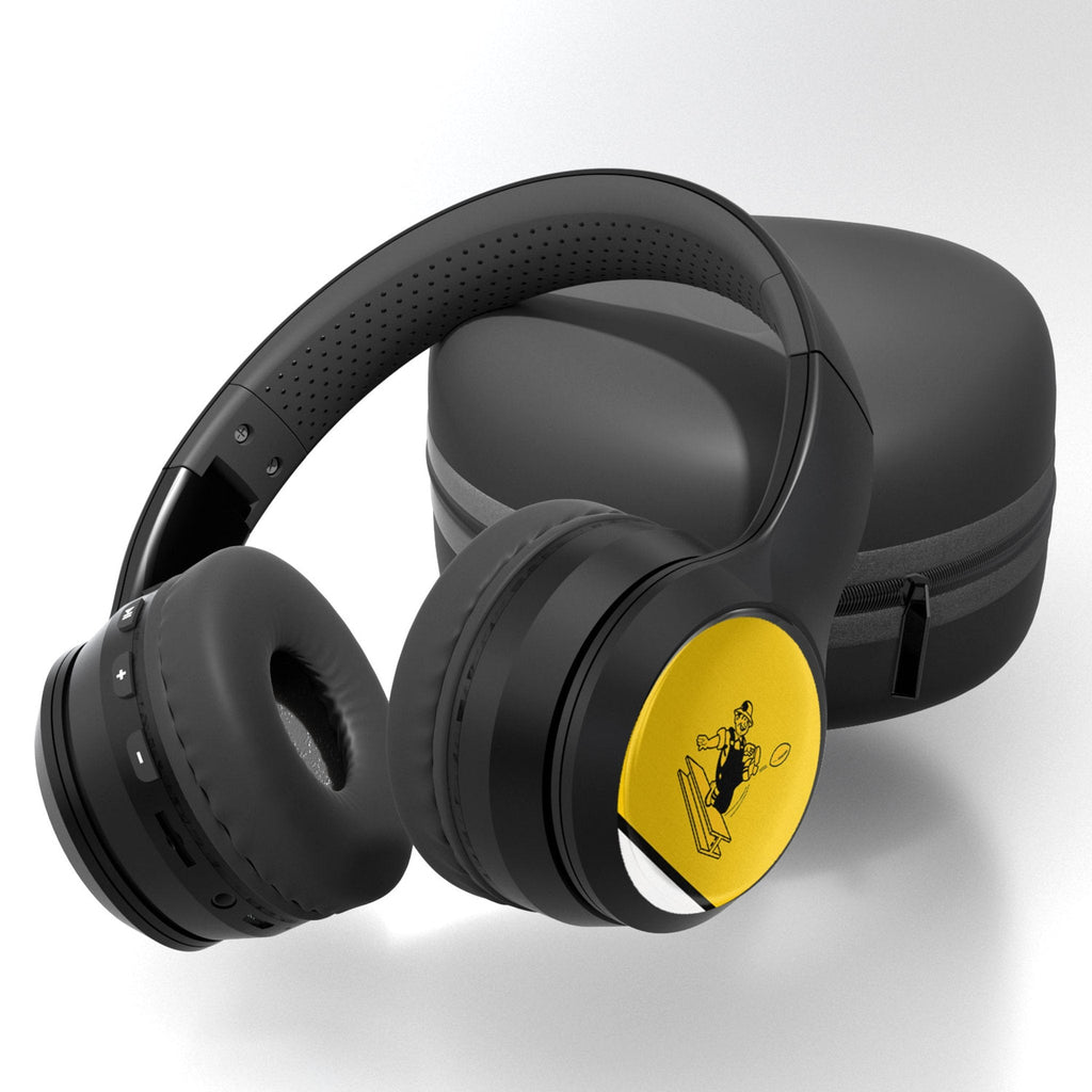 With the officially licensed Wireless "Over-Ear" Bluetooth Headphones, you have 14 hours of music time and 300 hours of standby time. These headphones have a built-in 500 mAh rechargeable battery that charges in 2.5 hours. The headphones, with a hardcover case, provide a crisp and superior sound with less than 3% distortion using bluetooth 5.0 technology and has a range of 45 feet. Audio frequency range is 20HZ to 20KHz. From playing your favorite music, to answering calls, to using the FM radio function at your favorite sporting event, you can take your officially licensed headphones wherever you go. Designed and decorated by Keyscaper in Tualatin, Oregon, USA.