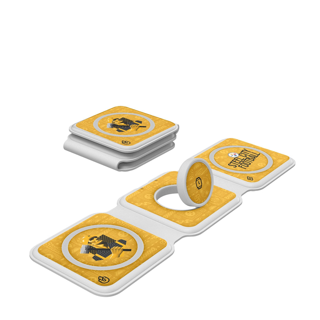 Eliminate cable clutter on your desk, night stand and travel with ease. The 3 in 1 folding charging station is small enough to fit in your pocket yet has room for all your mobile items with only one cord to plug in. Use this charging station to simultaneously charge your iPhone, airPods and Apple watch when pluggged in to a minimum 20 Watt wall charger.