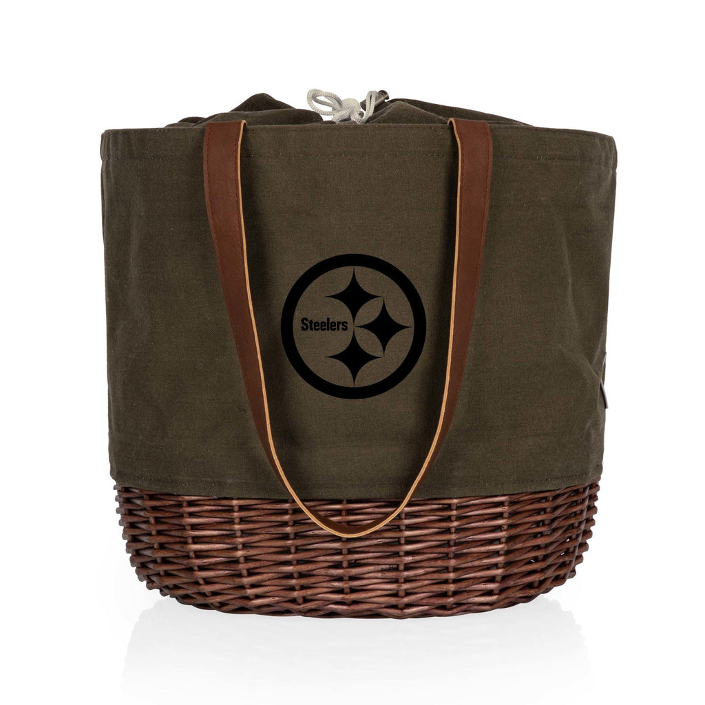 Is it a beach bag? Yes. Is it a picnic basket? Also yes. Is it a tote bag? Y-e-s. Will it be there for you because it's been there before? YES. You may find yourself asking more questions, but let me stop you there, because the answer is, "Yes." Somewhere between a durable picnic tote and a stylish beach bag, the Pittsburgh Steelers Coronado Canvas and Willow Basket Tote is the perfect companion wherever you're headed. This tote is three+ bags in one, with a willow wicker bottom, canvas body (in lots of chic colors and patterns), and fully-lined interior. This tote bag for women makes a statement (and fits a sizable wine and cheese picnic) while delivering handy canvas tote convenience everywhere from the grocery to the beach.