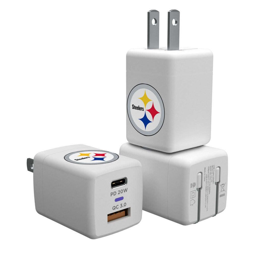 Officially licensed, ETL Listed, 20 Watt USB Charger has a USB A port and a USB C Port for dual charging and a compact design. With foldable prongs, it travels well in a suitcase, backpack or pocket. Designed and printed with your favorite characters or team by Keyscaper in Tualatin, Oregon USA.